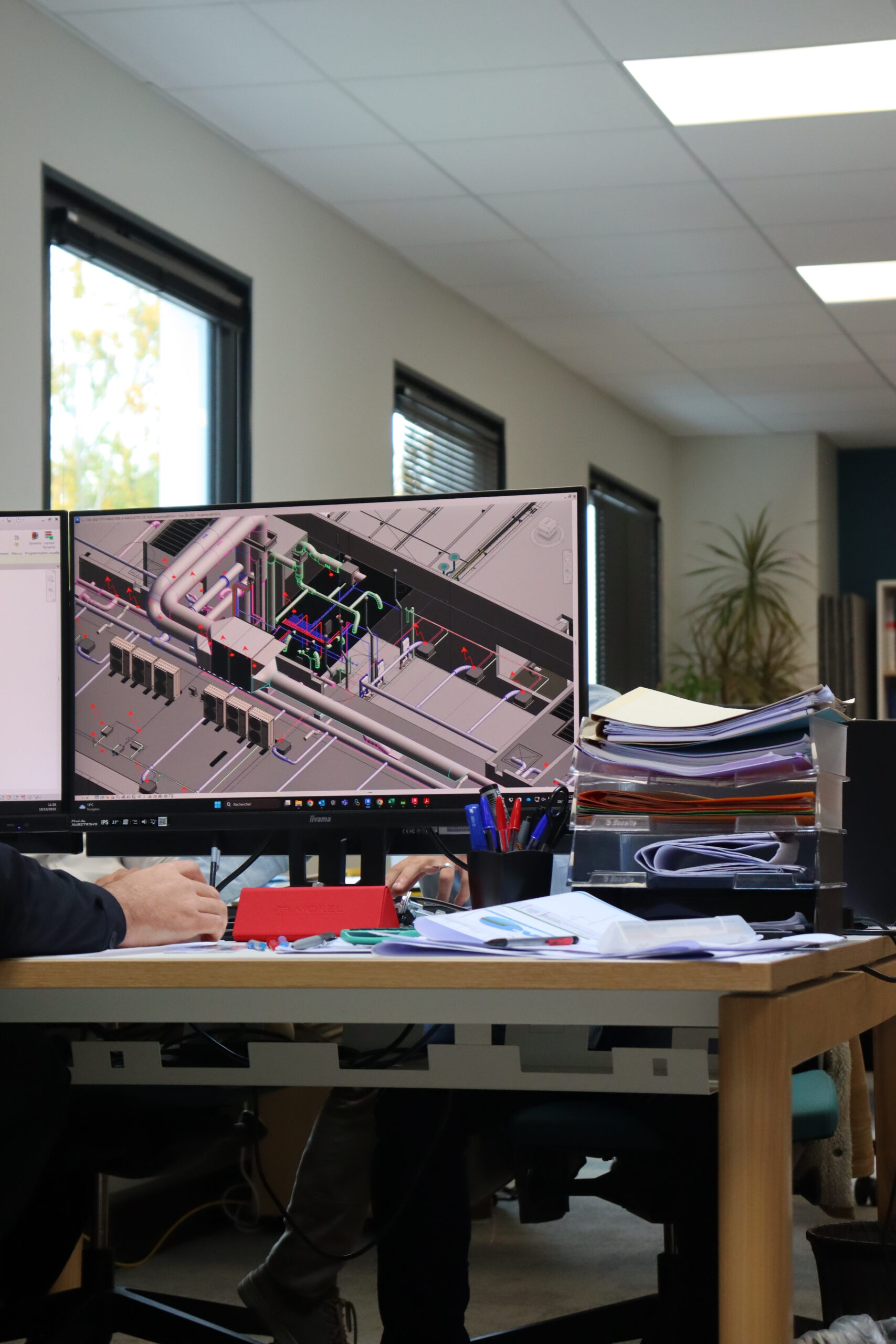 Notre bureau d’études prend en charge le dimensionnement, la conception et la modélisation 3D de vos installations (CVC, froid, plomberie, process).